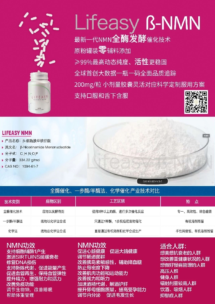 • Lifeasy NMN:美国cGMP药厂生产,纯度高达99.8%,附带第三方实验室检测报告,提升NAD+水平,哈佛研究证实可降低过敏抗体IgE高达41%。